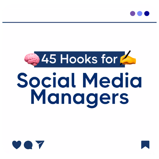 Grab your audience's attention with these 45 hooks specifically made for social media managers in any industry. These hooks will grab viewers attention through visual and auditory ways. You can even stack these hooks on top of each other to create extra scroll-stopping effects.