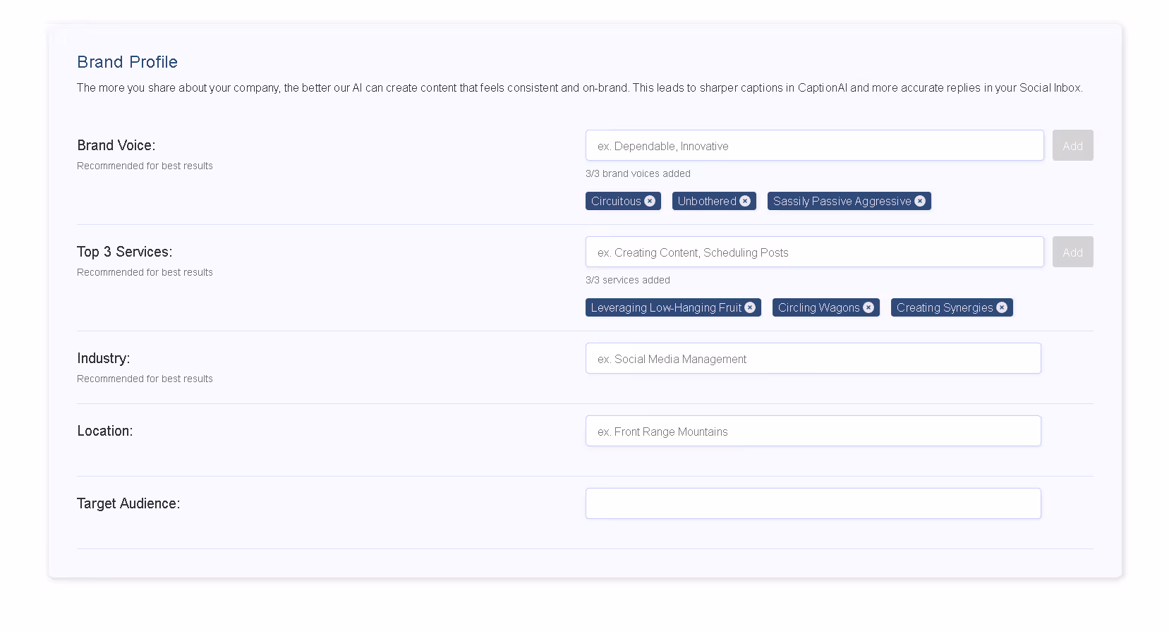 Workspace Profiles and CaptionAI are also connected, meaning that your captions will use the brand’s information when generating captions.