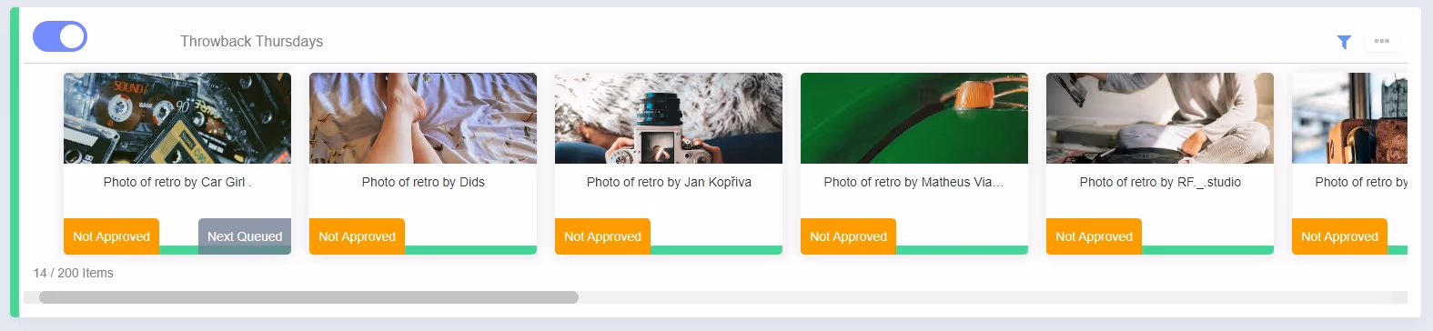 You should then see your schedule fill up with content based on the parameters you’ve set. You can quickly shut off any schedule using the toggle.