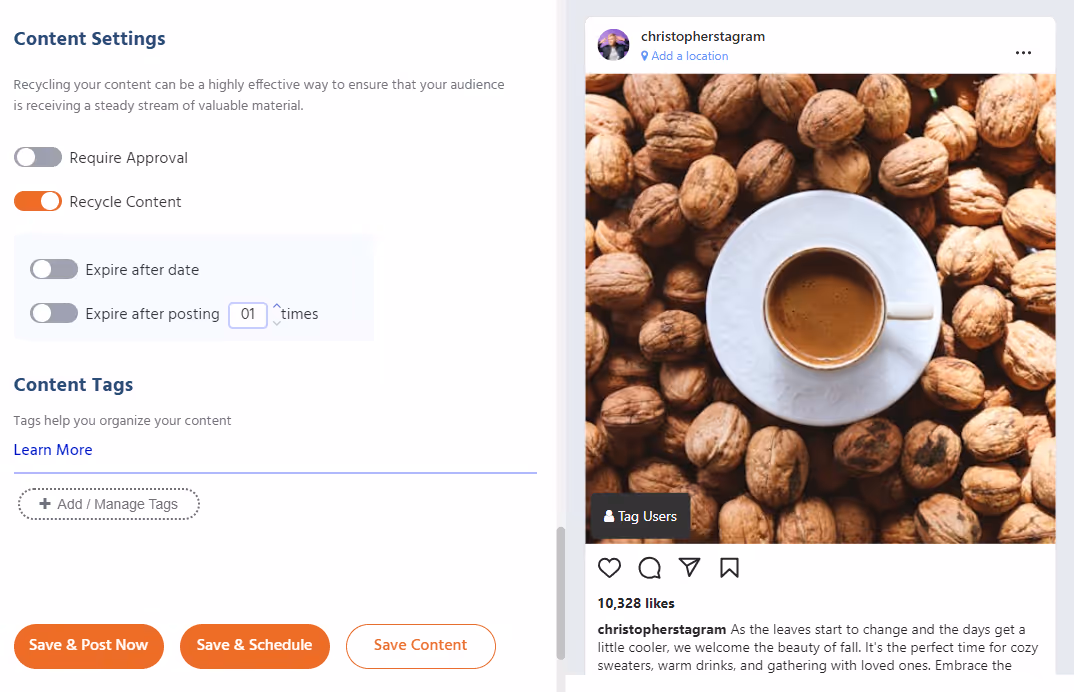 Save and schedule your content or prepare it for approval!
