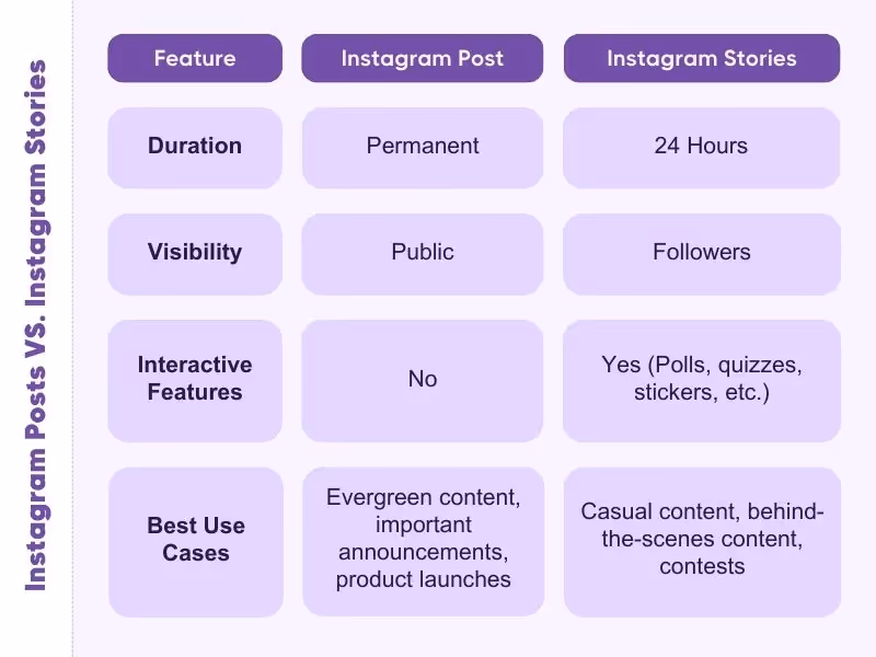 Here is a table that summarizes the key differences between Instagram Posts and Instagram Stories:
