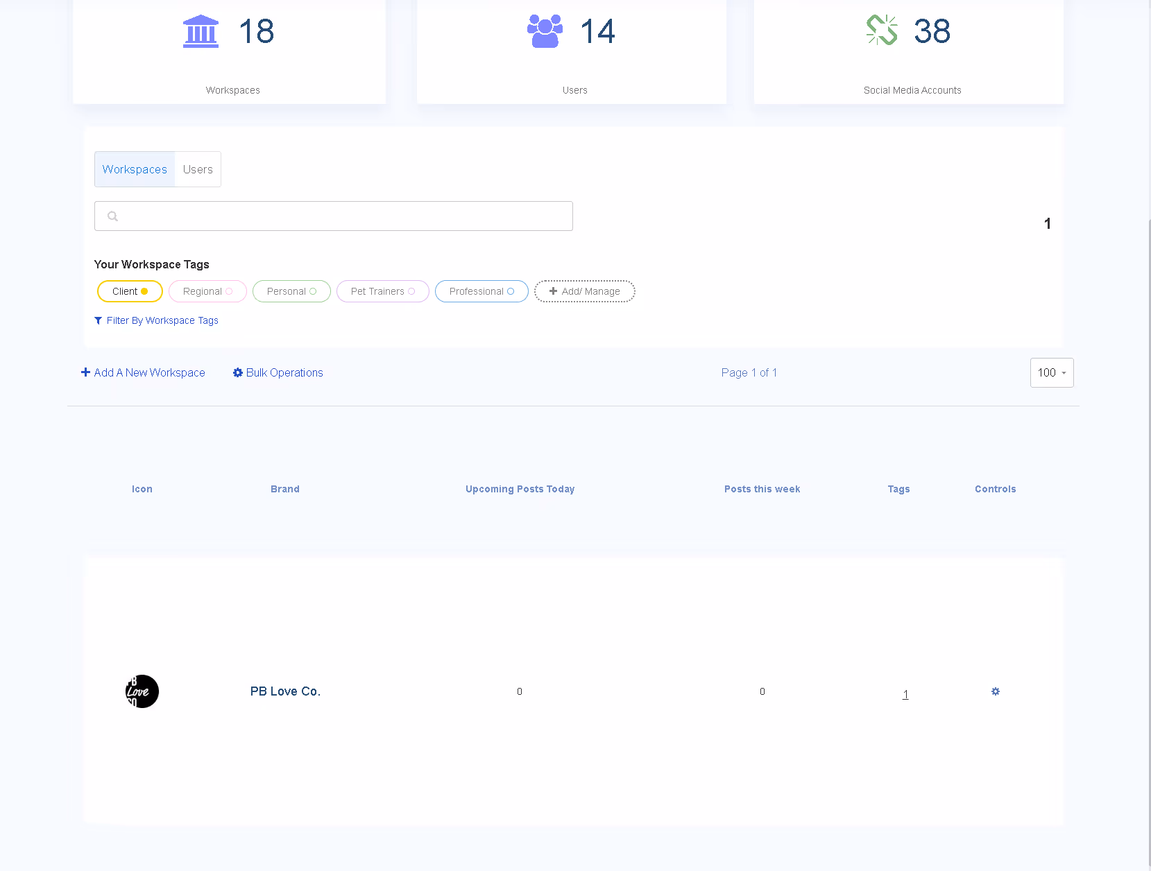 For example, you might need to reconnect expired social media accounts for multiple clients. You can do that from the Agency View in just a few clicks instead of switching to individual workspaces.
