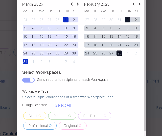Additionally, you can select whether to send the reports to designated external recipients of each workspace.