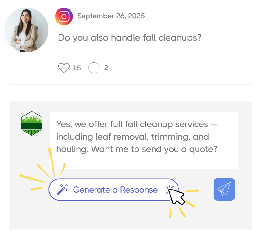 Quickly draft replies to direct messages, comments, and mentions with built-in AI assistance. The system suggests responses in your brand’s voice, helping you save time and maintain consistency. Team members can review, edit, and approve AI-generated drafts before sending, ensuring every reply is both efficient and authentic.